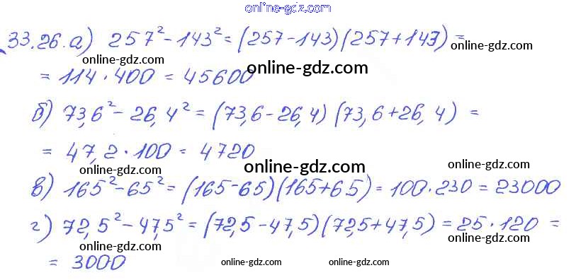 Готовые домашние задания по Алгебре за 7 класс Задачник Мордкович, Александрова Базовый уровень 2013 - § 33. Разложение многочленов на множители с помощью формул сокращенного умножения Глава 7 26