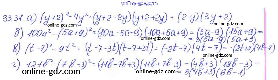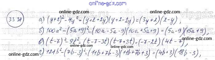 Готовые домашние задания по Алгебре за 7 класс Задачник Мордкович, Александрова Базовый уровень 2013 - § 33. Разложение многочленов на множители с помощью формул сокращенного умножения Глава 7 31
