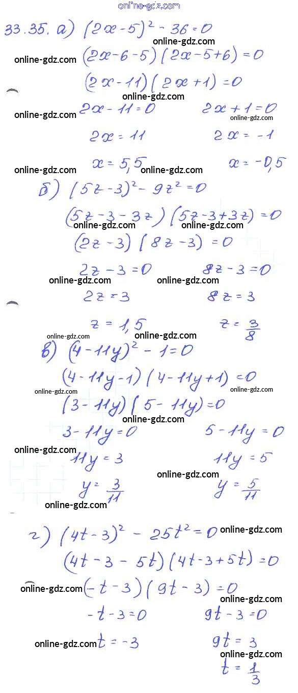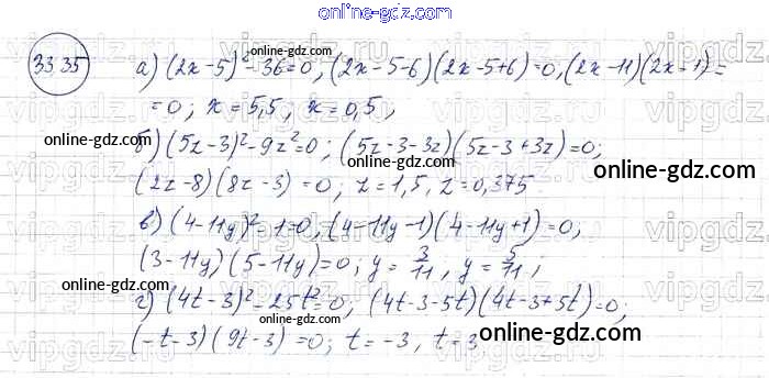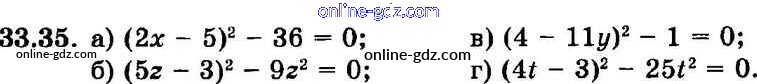 Готовые домашние задания по Алгебре за 7 класс Задачник Мордкович, Александрова Базовый уровень 2013 - § 33. Разложение многочленов на множители с помощью формул сокращенного умножения Глава 7 35