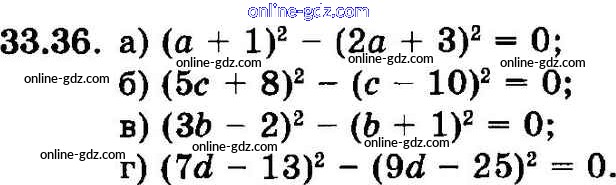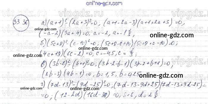 Готовые домашние задания по Алгебре за 7 класс Задачник Мордкович, Александрова Базовый уровень 2013 - § 33. Разложение многочленов на множители с помощью формул сокращенного умножения Глава 7 36