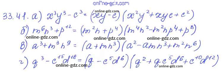 Готовые домашние задания по Алгебре за 7 класс Задачник Мордкович, Александрова Базовый уровень 2013 - § 33. Разложение многочленов на множители с помощью формул сокращенного умножения Глава 7 41