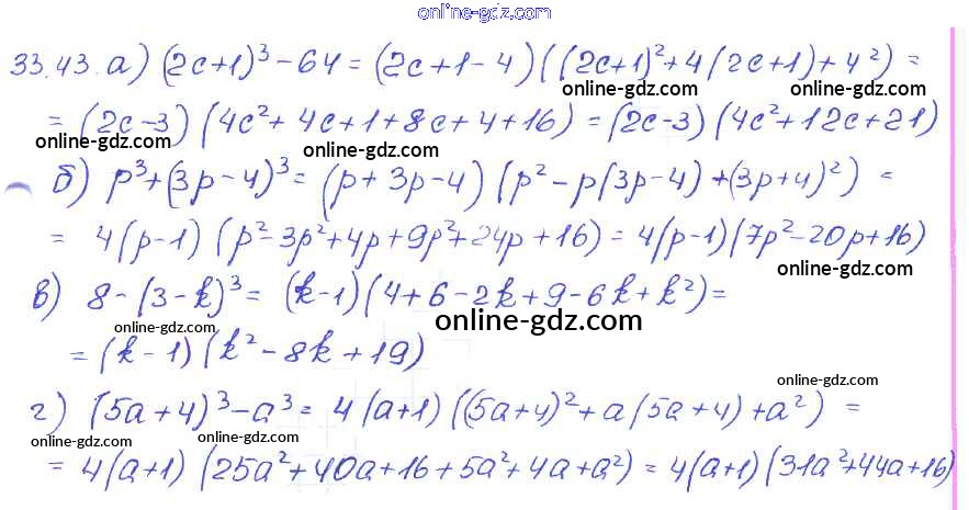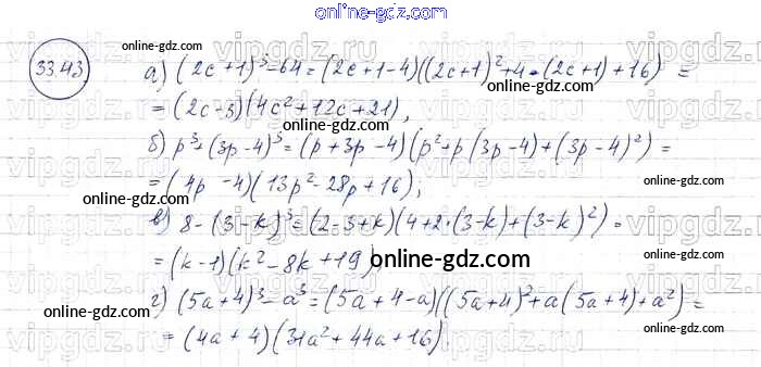 Готовые домашние задания по Алгебре за 7 класс Задачник Мордкович, Александрова Базовый уровень 2013 - § 33. Разложение многочленов на множители с помощью формул сокращенного умножения Глава 7 43