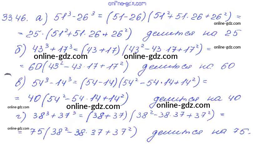 Готовые домашние задания по Алгебре за 7 класс Задачник Мордкович, Александрова Базовый уровень 2013 - § 33. Разложение многочленов на множители с помощью формул сокращенного умножения Глава 7 46