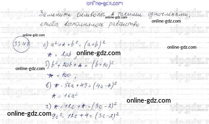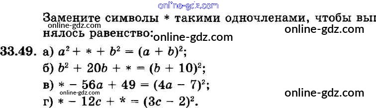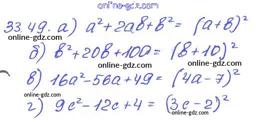 Готовые домашние задания по Алгебре за 7 класс Задачник Мордкович, Александрова Базовый уровень 2013 - § 33. Разложение многочленов на множители с помощью формул сокращенного умножения Глава 7 49
