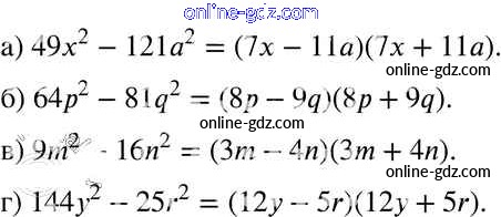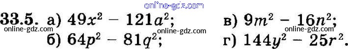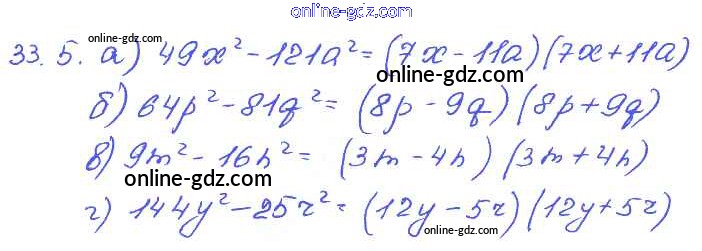 Готовые домашние задания по Алгебре за 7 класс Задачник Мордкович, Александрова Базовый уровень 2013 - § 33. Разложение многочленов на множители с помощью формул сокращенного умножения Глава 7 5