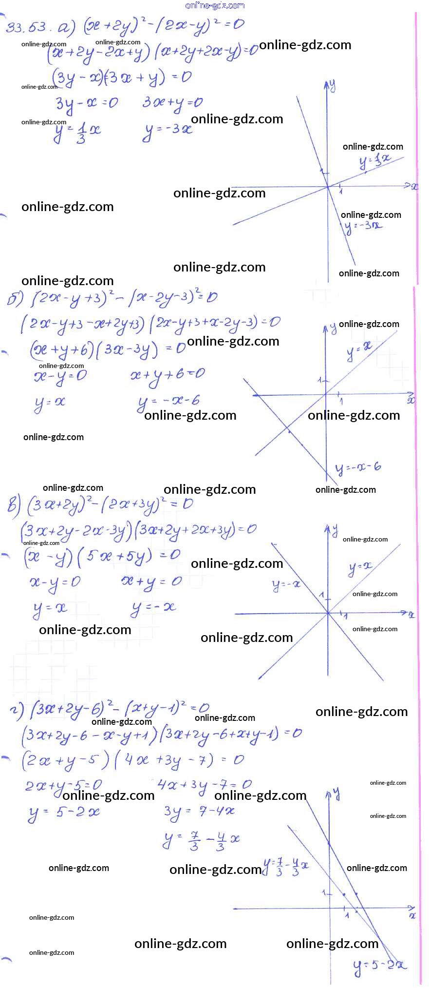 Готовые домашние задания по Алгебре за 7 класс Задачник Мордкович, Александрова Базовый уровень 2013 - § 33. Разложение многочленов на множители с помощью формул сокращенного умножения Глава 7 53