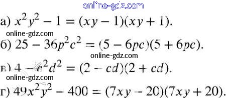 Готовые домашние задания по Алгебре за 7 класс Задачник Мордкович, Александрова Базовый уровень 2013 - § 33. Разложение многочленов на множители с помощью формул сокращенного умножения Глава 7 6