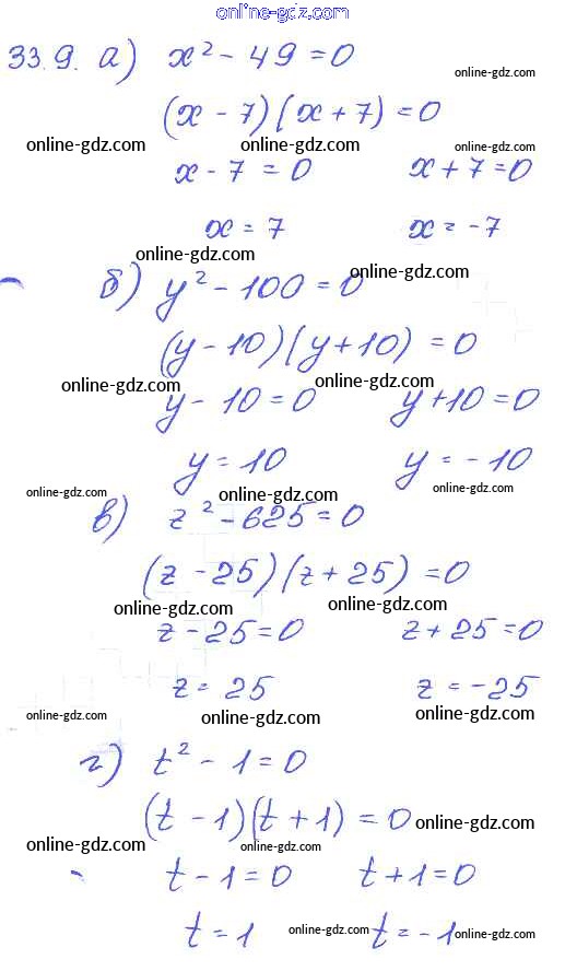 Готовые домашние задания по Алгебре за 7 класс Задачник Мордкович, Александрова Базовый уровень 2013 - § 33. Разложение многочленов на множители с помощью формул сокращенного умножения Глава 7 9