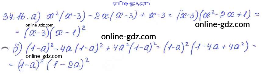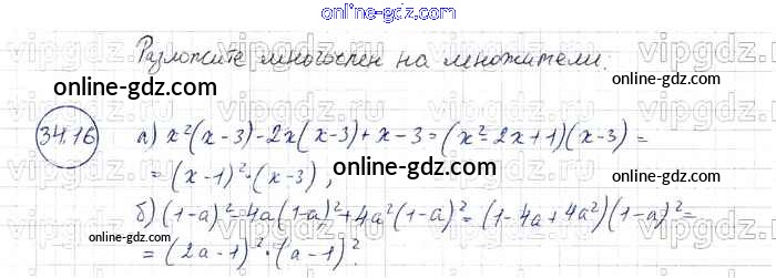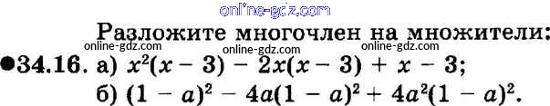 Готовые домашние задания по Алгебре за 7 класс Задачник Мордкович, Александрова Базовый уровень 2013 - § 34. Разложение многочленов на множители с помощью комбинаций различных приемов Глава 7 16