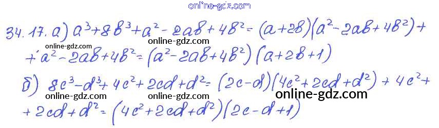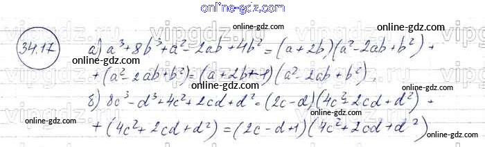 Готовые домашние задания по Алгебре за 7 класс Задачник Мордкович, Александрова Базовый уровень 2013 - § 34. Разложение многочленов на множители с помощью комбинаций различных приемов Глава 7 17
