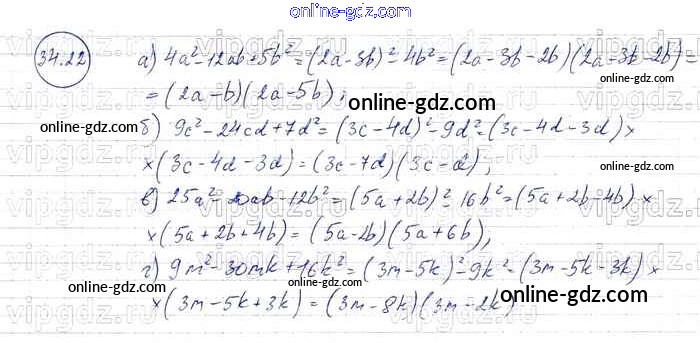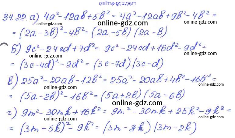 Готовые домашние задания по Алгебре за 7 класс Задачник Мордкович, Александрова Базовый уровень 2013 - § 34. Разложение многочленов на множители с помощью комбинаций различных приемов Глава 7 22