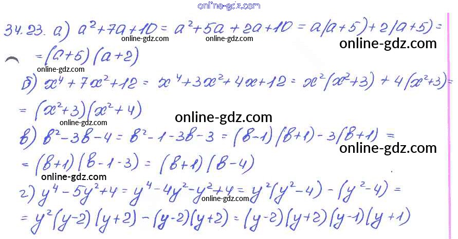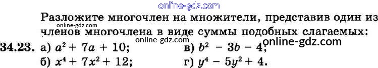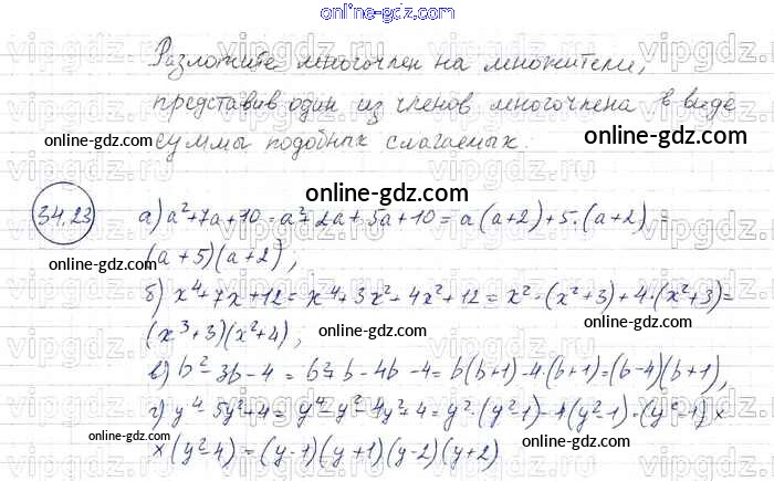 Готовые домашние задания по Алгебре за 7 класс Задачник Мордкович, Александрова Базовый уровень 2013 - § 34. Разложение многочленов на множители с помощью комбинаций различных приемов Глава 7 23