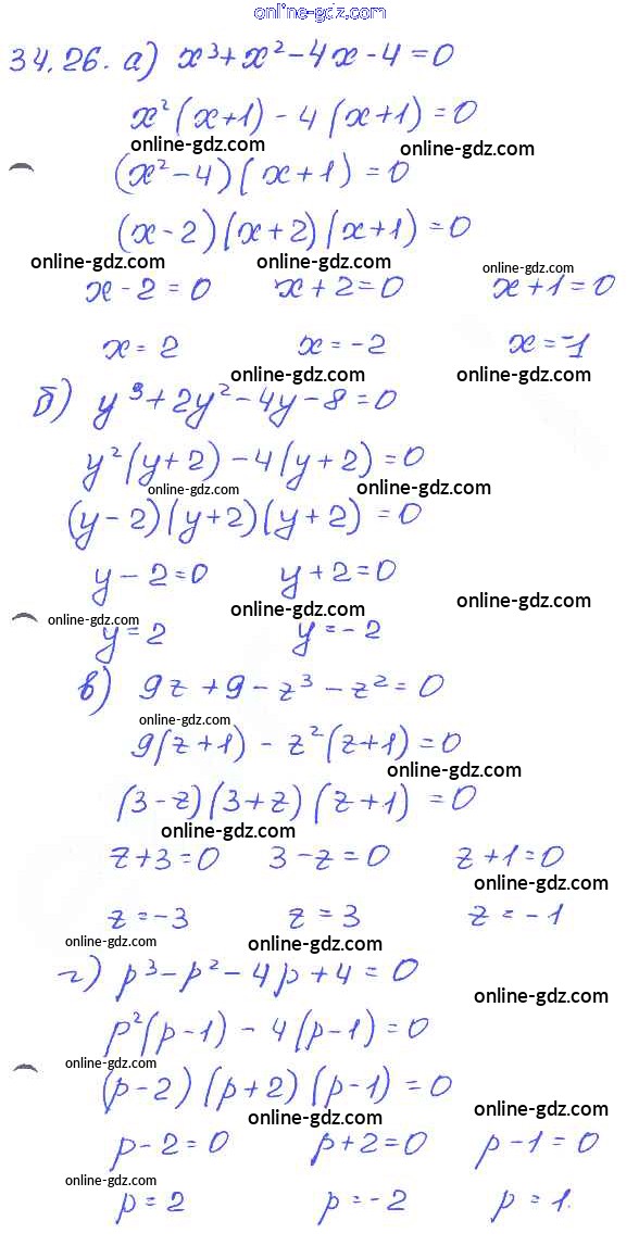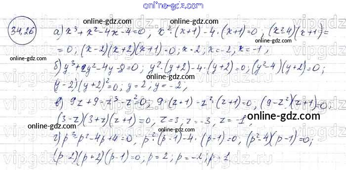 Готовые домашние задания по Алгебре за 7 класс Задачник Мордкович, Александрова Базовый уровень 2013 - § 34. Разложение многочленов на множители с помощью комбинаций различных приемов Глава 7 26