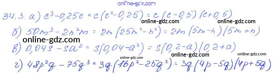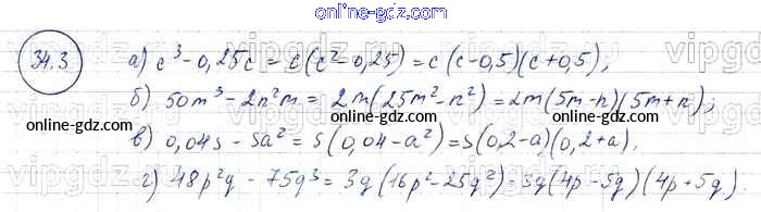 Готовые домашние задания по Алгебре за 7 класс Задачник Мордкович, Александрова Базовый уровень 2013 - § 34. Разложение многочленов на множители с помощью комбинаций различных приемов Глава 7 3