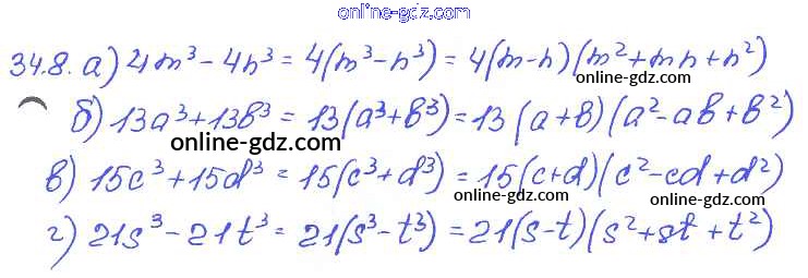 Готовые домашние задания по Алгебре за 7 класс Задачник Мордкович, Александрова Базовый уровень 2013 - § 34. Разложение многочленов на множители с помощью комбинаций различных приемов Глава 7 8