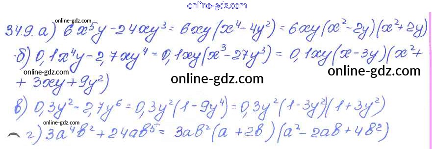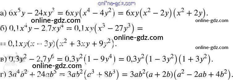 Готовые домашние задания по Алгебре за 7 класс Задачник Мордкович, Александрова Базовый уровень 2013 - § 34. Разложение многочленов на множители с помощью комбинаций различных приемов Глава 7 9