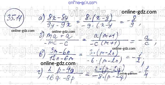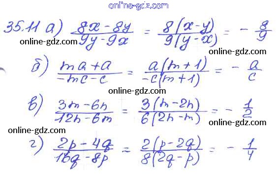 Готовые домашние задания по Алгебре за 7 класс Задачник Мордкович, Александрова Базовый уровень 2013 - § 35. Сокращение алгебраических дробей Глава 7 11