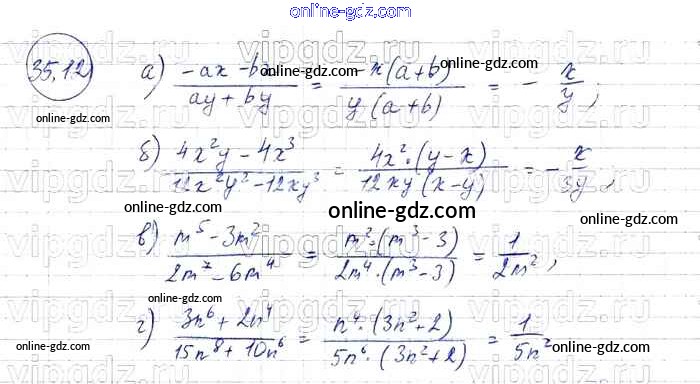 Готовые домашние задания по Алгебре за 7 класс Задачник Мордкович, Александрова Базовый уровень 2013 - § 35. Сокращение алгебраических дробей Глава 7 12