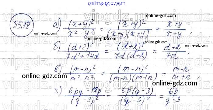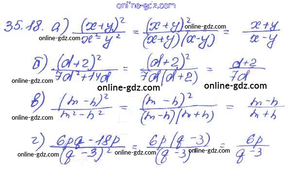 Готовые домашние задания по Алгебре за 7 класс Задачник Мордкович, Александрова Базовый уровень 2013 - § 35. Сокращение алгебраических дробей Глава 7 18