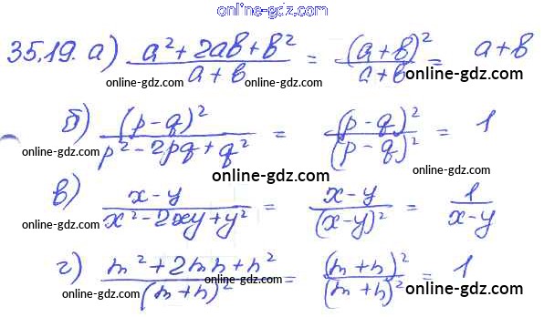Готовые домашние задания по Алгебре за 7 класс Задачник Мордкович, Александрова Базовый уровень 2013 - § 35. Сокращение алгебраических дробей Глава 7 19