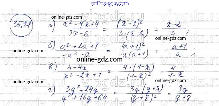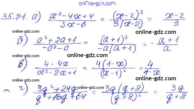 Готовые домашние задания по Алгебре за 7 класс Задачник Мордкович, Александрова Базовый уровень 2013 - § 35. Сокращение алгебраических дробей Глава 7 21