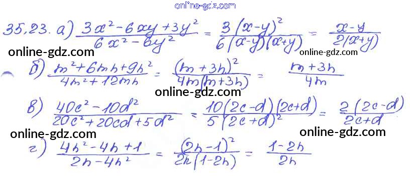 Готовые домашние задания по Алгебре за 7 класс Задачник Мордкович, Александрова Базовый уровень 2013 - § 35. Сокращение алгебраических дробей Глава 7 23