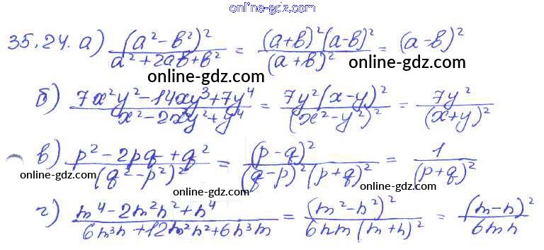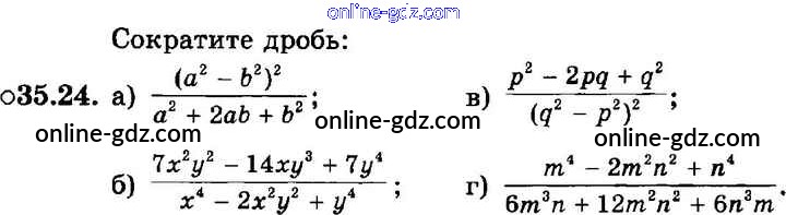 Готовые домашние задания по Алгебре за 7 класс Задачник Мордкович, Александрова Базовый уровень 2013 - § 35. Сокращение алгебраических дробей Глава 7 24