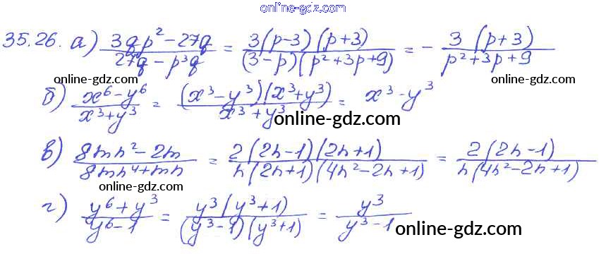 Готовые домашние задания по Алгебре за 7 класс Задачник Мордкович, Александрова Базовый уровень 2013 - § 35. Сокращение алгебраических дробей Глава 7 26