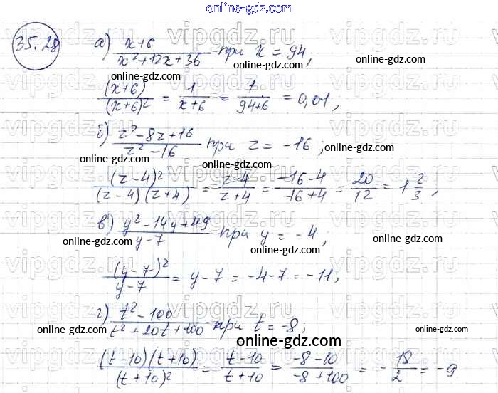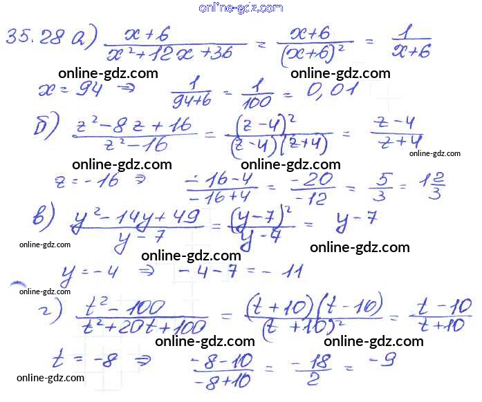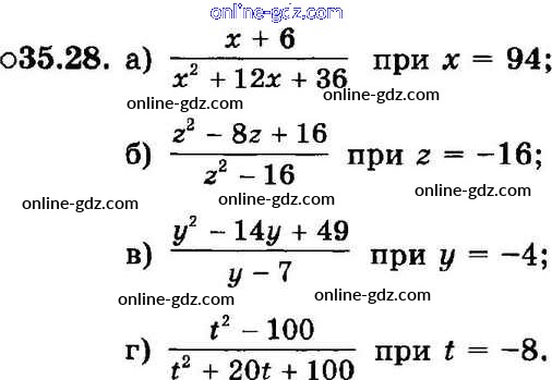 Готовые домашние задания по Алгебре за 7 класс Задачник Мордкович, Александрова Базовый уровень 2013 - § 35. Сокращение алгебраических дробей Глава 7 28