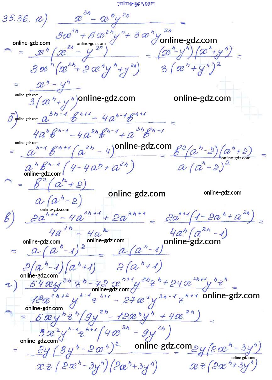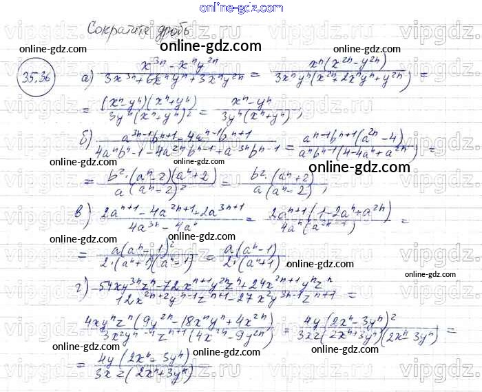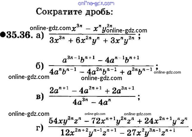 Готовые домашние задания по Алгебре за 7 класс Задачник Мордкович, Александрова Базовый уровень 2013 - § 35. Сокращение алгебраических дробей Глава 7 36