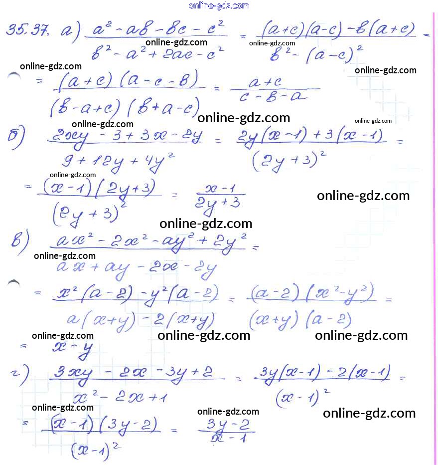 Готовые домашние задания по Алгебре за 7 класс Задачник Мордкович, Александрова Базовый уровень 2013 - § 35. Сокращение алгебраических дробей Глава 7 37