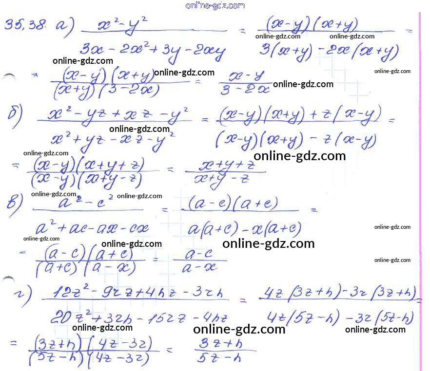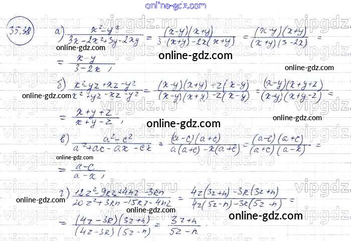 Готовые домашние задания по Алгебре за 7 класс Задачник Мордкович, Александрова Базовый уровень 2013 - § 35. Сокращение алгебраических дробей Глава 7 38