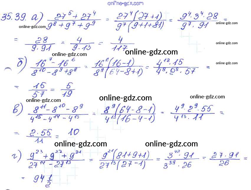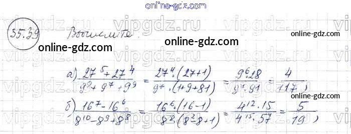 Готовые домашние задания по Алгебре за 7 класс Задачник Мордкович, Александрова Базовый уровень 2013 - § 35. Сокращение алгебраических дробей Глава 7 39
