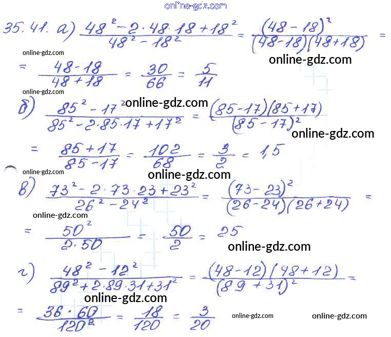Готовые домашние задания по Алгебре за 7 класс Задачник Мордкович, Александрова Базовый уровень 2013 - § 35. Сокращение алгебраических дробей Глава 7 41
