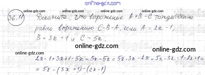 Готовые домашние задания по Алгебре за 7 класс Задачник Мордкович, Александрова Базовый уровень 2013 - § 36. Тождества Глава 7 11
