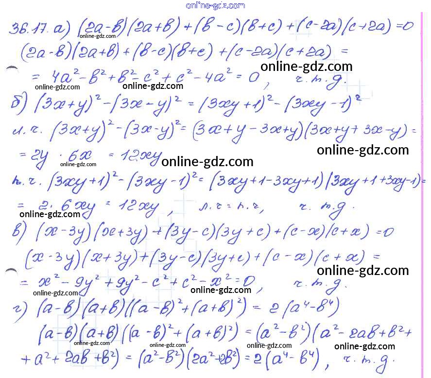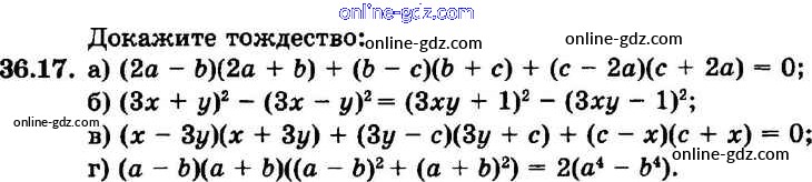 Готовые домашние задания по Алгебре за 7 класс Задачник Мордкович, Александрова Базовый уровень 2013 - § 36. Тождества Глава 7 17