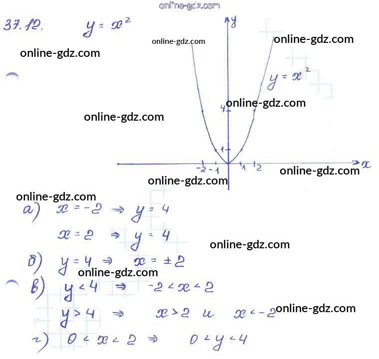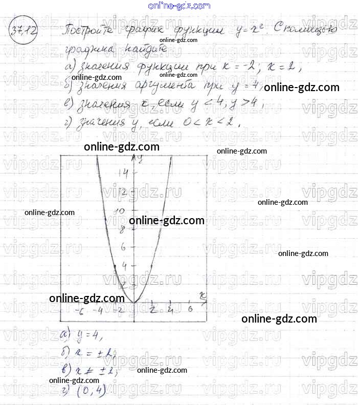 Готовые домашние задания по Алгебре за 7 класс Задачник Мордкович, Александрова Базовый уровень 2013 - § 37. Функция у = х2 и ее график Глава 8 12