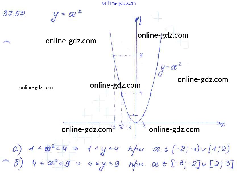 Готовые домашние задания по Алгебре за 7 класс Задачник Мордкович, Александрова Базовый уровень 2013 - § 37. Функция у = х2 и ее график Глава 8 52
