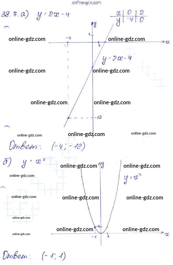 Готовые домашние задания по Алгебре за 7 класс Задачник Мордкович, Александрова Базовый уровень 2013 - § 38. Графическое решение уравнений Глава 8 7