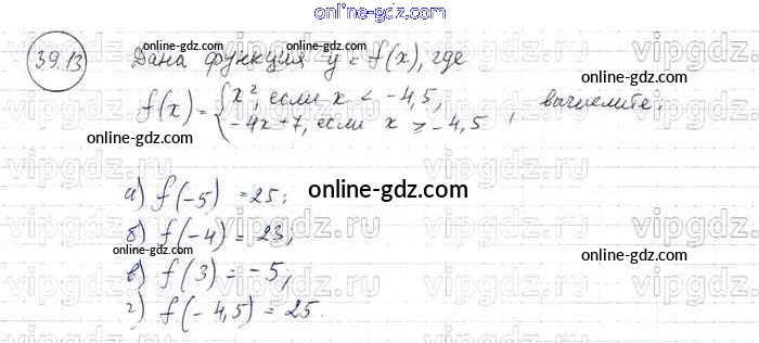 Готовые домашние задания по Алгебре за 7 класс Задачник Мордкович, Александрова Базовый уровень 2013 - § 39. Что означает в математике запись у = f{x) Глава 8 13
