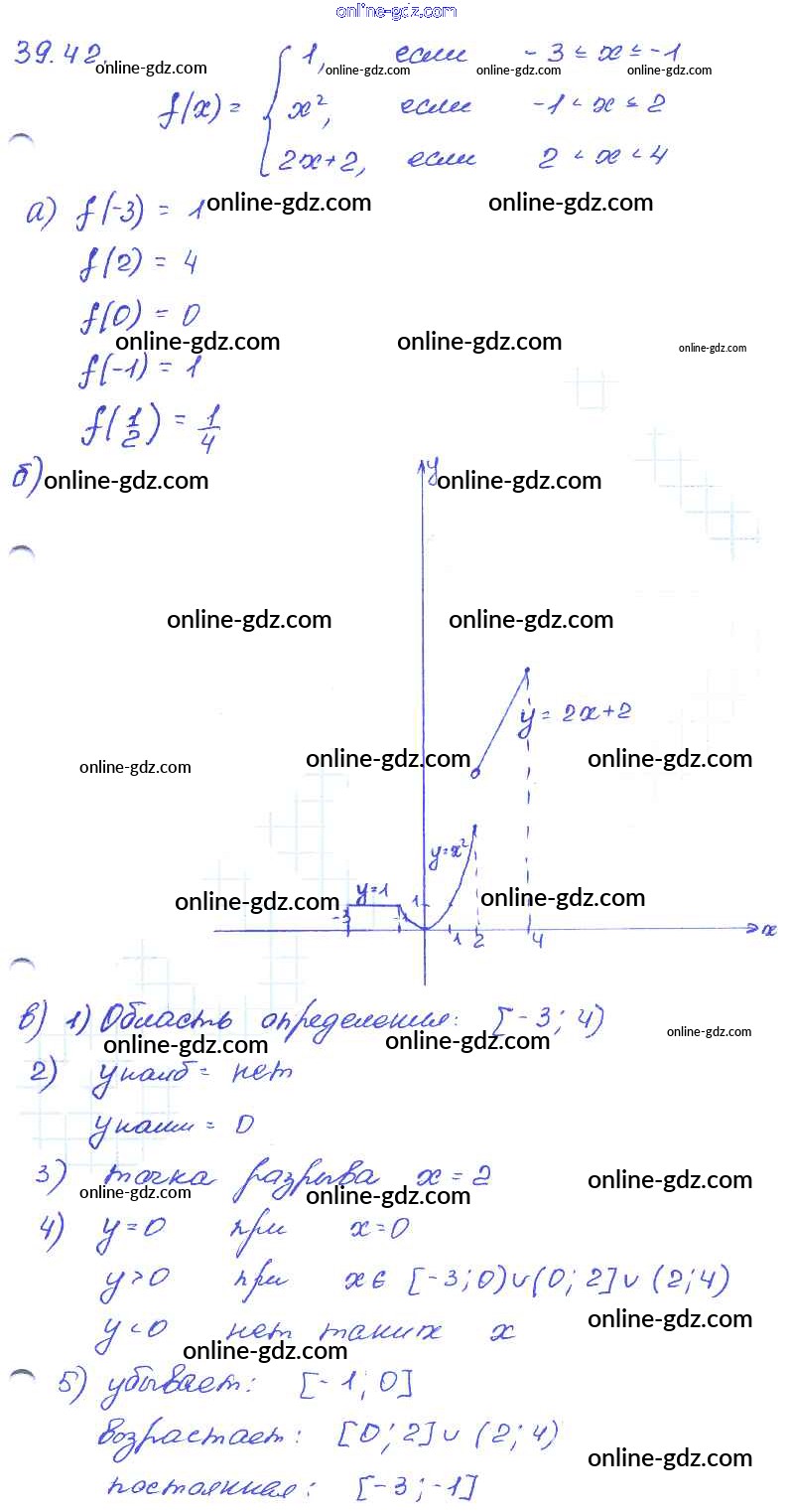Готовые домашние задания по Алгебре за 7 класс Задачник Мордкович, Александрова Базовый уровень 2013 - § 39. Что означает в математике запись у = f{x) Глава 8 42