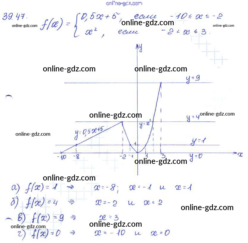 Готовые домашние задания по Алгебре за 7 класс Задачник Мордкович, Александрова Базовый уровень 2013 - § 39. Что означает в математике запись у = f{x) Глава 8 47