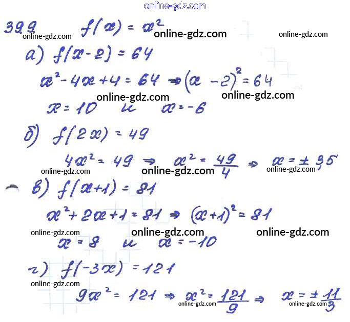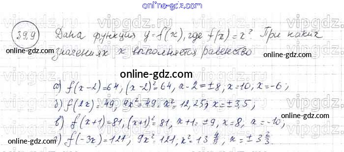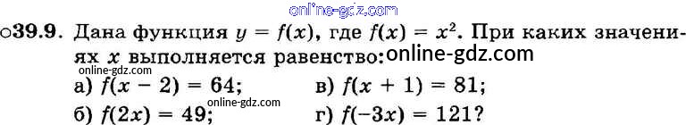 Готовые домашние задания по Алгебре за 7 класс Задачник Мордкович, Александрова Базовый уровень 2013 - § 39. Что означает в математике запись у = f{x) Глава 8 9