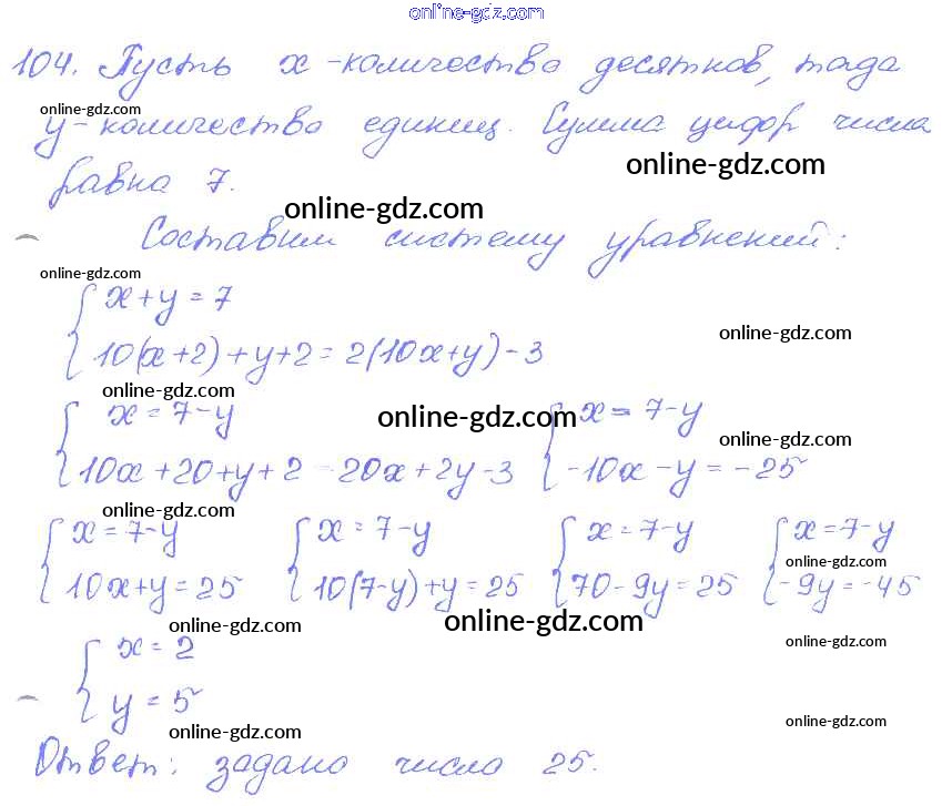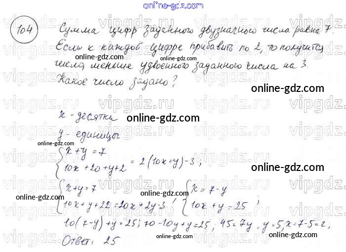 Готовые домашние задания по Алгебре за 7 класс Задачник Мордкович, Александрова Базовый уровень 2013 - Глава 9. Итоговое повторение 104