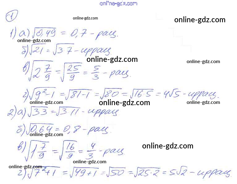 Готовые домашние задания по Алгебре за 8 класс Дидактические материалы Евстафьева, Карп 2017 - О-11. Иррациональные числа Обучающие работы 1