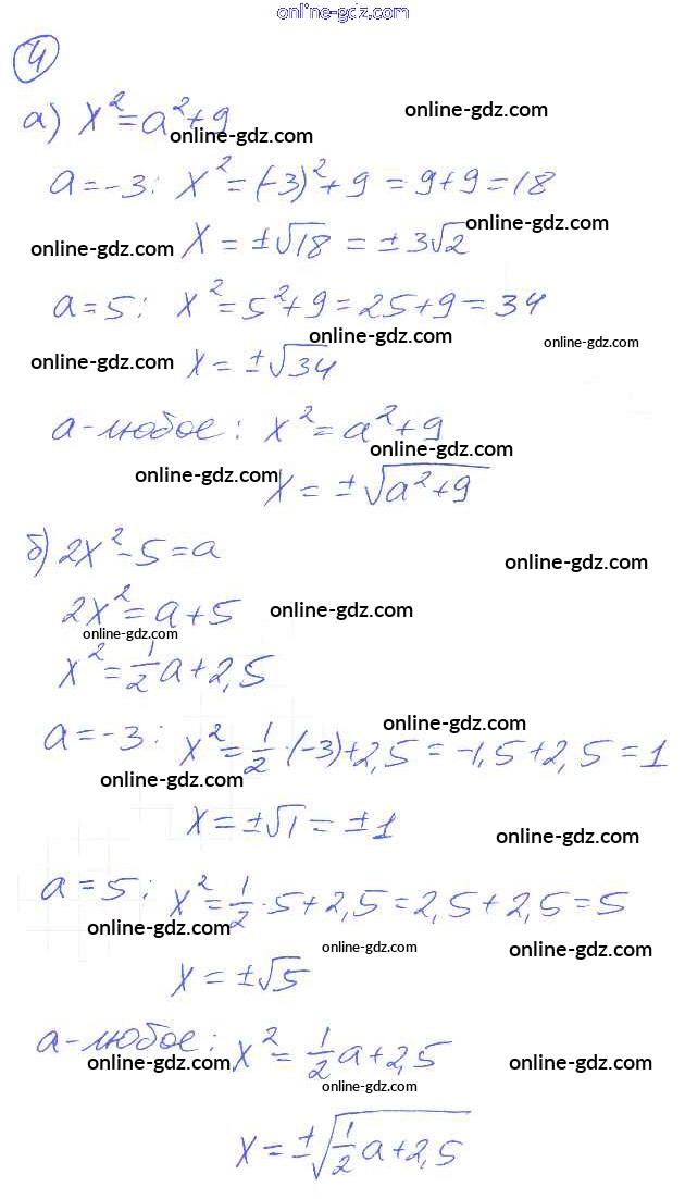 Готовые домашние задания по Алгебре за 8 класс Дидактические материалы Евстафьева, Карп 2017 - О-12. Решение уравнений вида х2 = а Обучающие работы 4