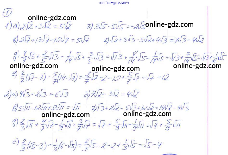 Готовые домашние задания по Алгебре за 8 класс Дидактические материалы Евстафьева, Карп 2017 - О-14. Преобразование выражений, содержащих квадратные корни Обучающие работы 1