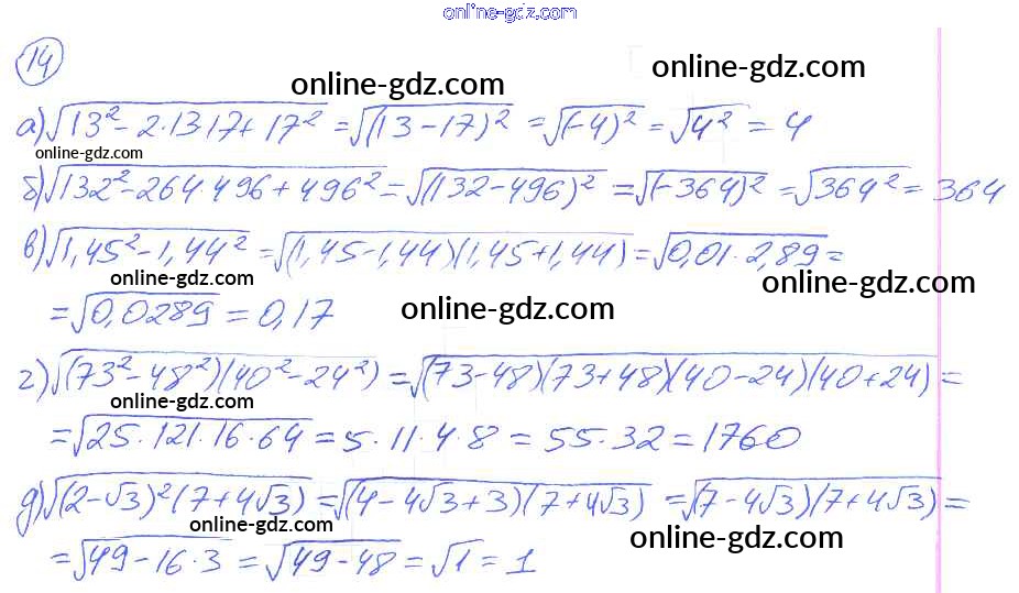 Готовые домашние задания по Алгебре за 8 класс Дидактические материалы Евстафьева, Карп 2017 - О-14. Преобразование выражений, содержащих квадратные корни Обучающие работы 14
