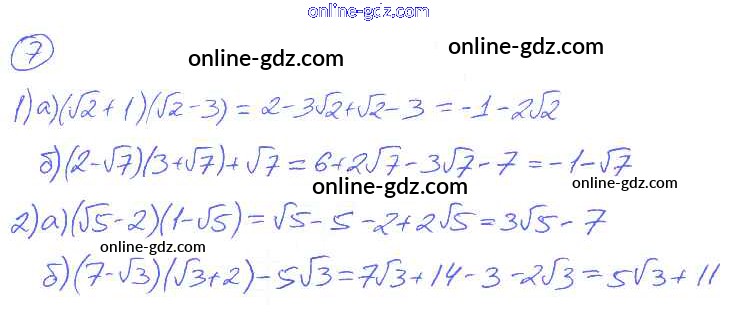 Готовые домашние задания по Алгебре за 8 класс Дидактические материалы Евстафьева, Карп 2017 - О-14. Преобразование выражений, содержащих квадратные корни Обучающие работы 7
