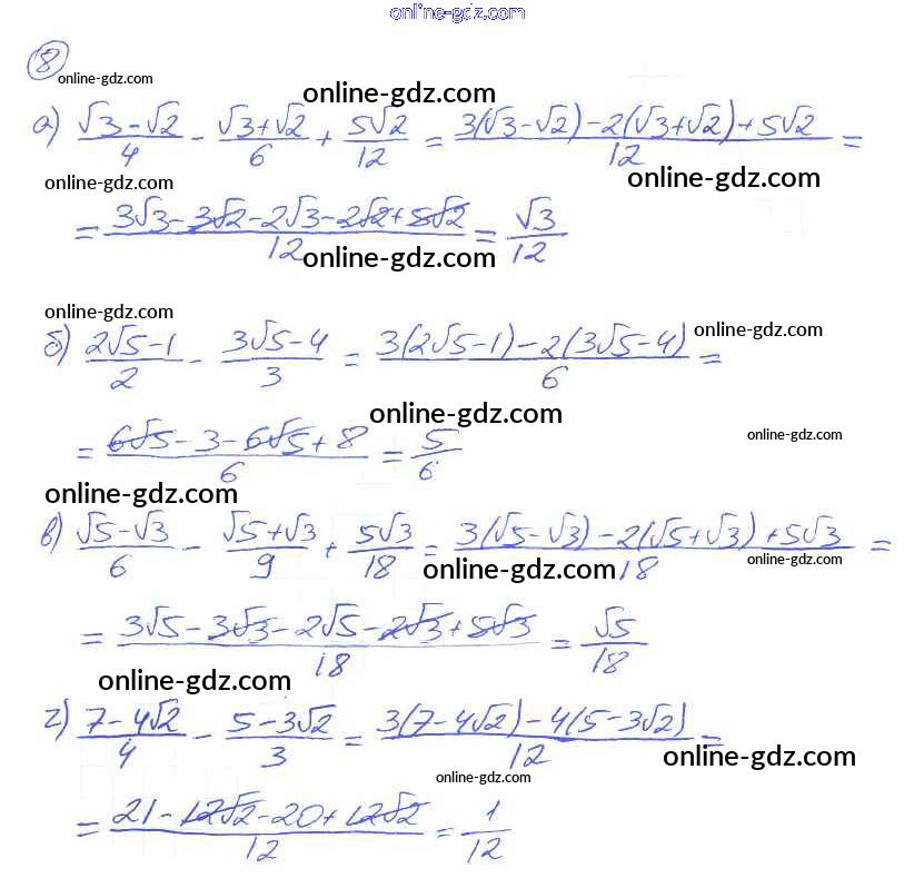 Готовые домашние задания по Алгебре за 8 класс Дидактические материалы Евстафьева, Карп 2017 - О-14. Преобразование выражений, содержащих квадратные корни Обучающие работы 8